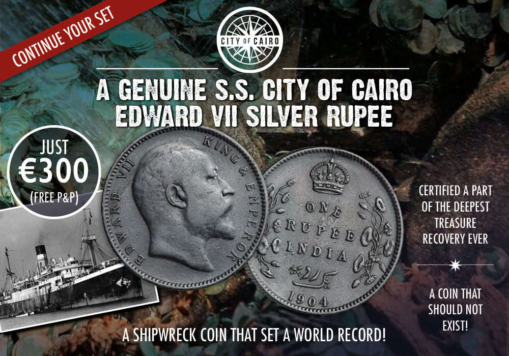 Order The SS City of Cairo Remembered 'The Sunken' Original Silver Rupee today for just 300 (FREE P&P), or three interest-free instalments of €100 (FREE P&P)
