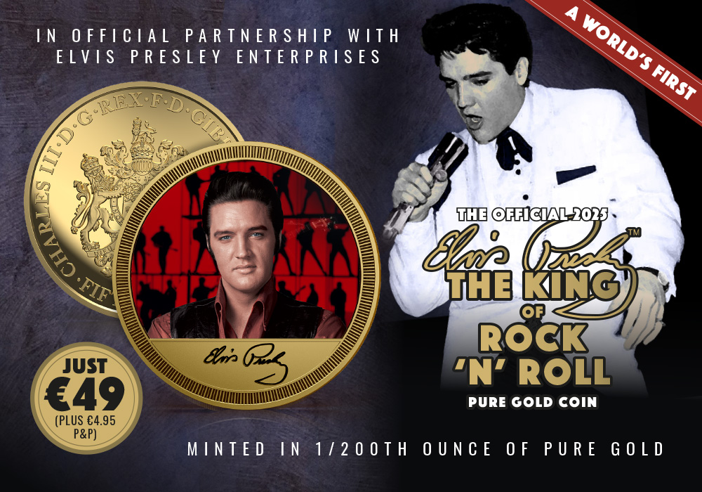 Claim your The Official Elvis Presley ‘The King of Rock ‘n’ Roll’ Pure Gold Coin today for just €49! (PLUS €4.95 P&P)