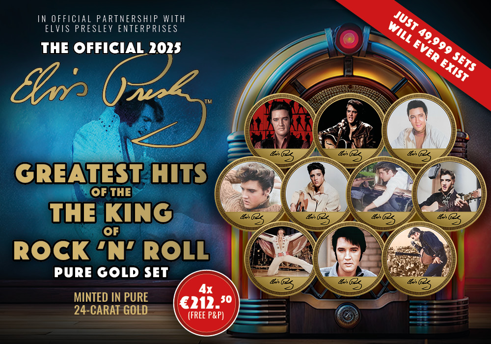 ORDER YOUR OFFICIAL ELVIS PRESLEY GREATEST HITS OF THE KING OF ROCK ‘N’ ROLL PURE GOLD SET FOR FOUR INTEREST-FREE INSTALMENTS OF JUST €212.50! (FREE P&P)