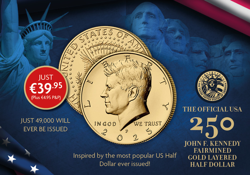 Order The Official USA 250 John F. Kennedy 2025 Half Dollar Coin today for just €39.95 (plus €4.95 P&P)